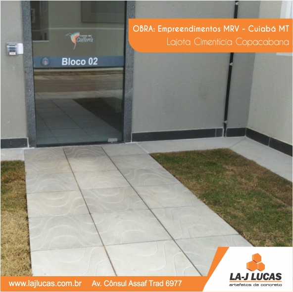 A Lajota Copacabana é um tipo de lajota utilizada para calçamento. Possuem baixa absorção de calor, durabilidade, fácil manutenção, limpeza e são antiderrapantes.