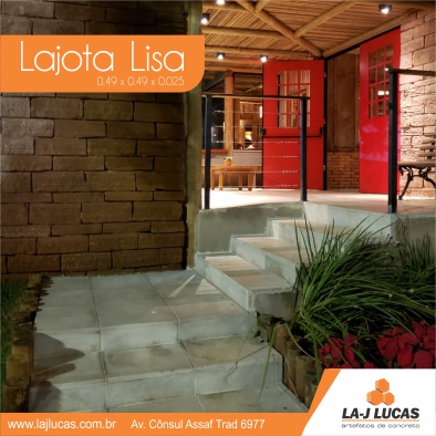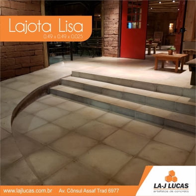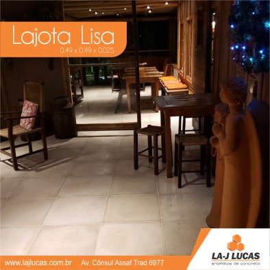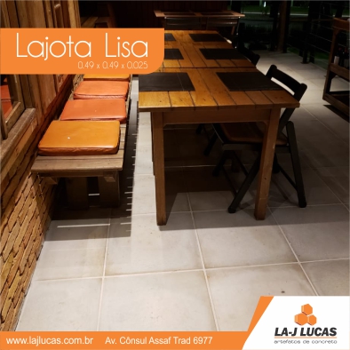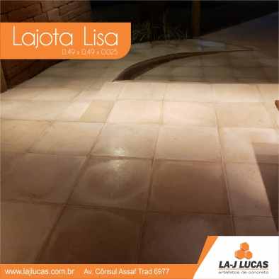 A lajota lisa é um tipo de lajota utilizada para calçamento. Possuem baixa absorção de calor, durabilidade, antiaderência, fácil manutenção e limpeza.
