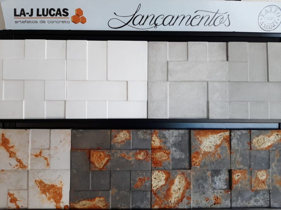 A paginação com as placas Geométricas é compostas por 12 placas em formato 3D com diferentes angulações, que juntas fazem o formato geométrico.