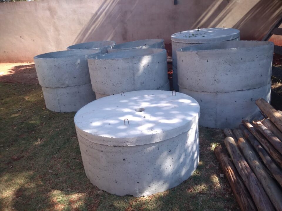 Para um sistema de fossa correto e eficaz é preciso utilizar os tubos de concreto armado lisos e perfurados popularmente conhecidos como manilhas de forma adequada com os três poços de captação.